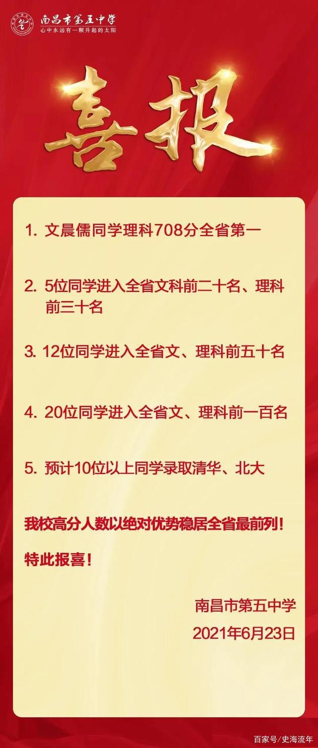 重磅!蕞高708分來(lái)自這所高中!江西省2021年高考理科狀元出爐