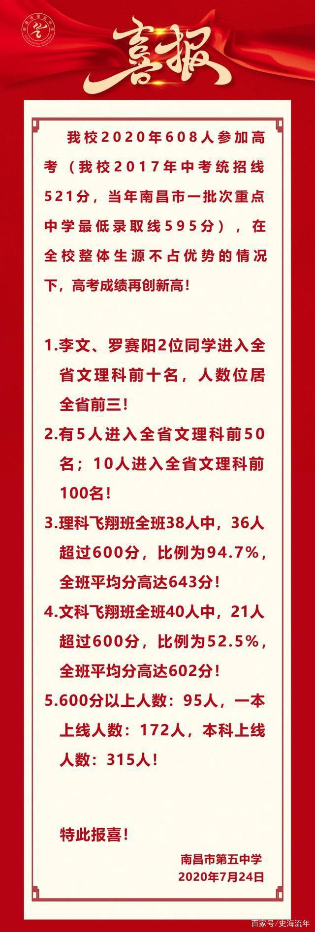 對(duì)比一下南昌市第五中學(xué)2020年的高考成績(jī),可以發(fā)現(xiàn),南昌市第五中學(xué)在2021年高考中取得優(yōu)異成績(jī),并非偶然。請(qǐng)看南昌市第五中學(xué)高考喜報(bào)!