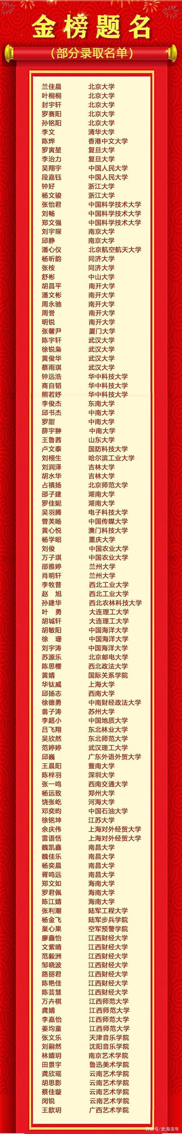 再看一看南昌市第五中學(xué)錄取金榜,原來(lái),2020年南昌市第五中學(xué)錄取清華大學(xué)1人,錄取北京大學(xué)5人。錄取中國(guó)人民大學(xué)、復(fù)旦大學(xué)、浙江大學(xué)、南京大學(xué)等高水平均為2人。錄取香港中文大學(xué)1人,錄取中國(guó)科學(xué)技術(shù)大學(xué)3人。