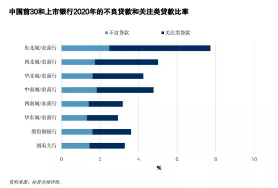 不過標(biāo)普全球評級認(rèn)為,前述數(shù)據(jù)仍有進(jìn)一步緩和的可能?!靶鹿谝咔槠陂g監(jiān)管機(jī)構(gòu)的寬限政策為銀行提供了延遲確認(rèn)不良貸款的機(jī)會窗口。我們估算,截至2020年底,商業(yè)銀行的寬限貸款占總貸款的3.5%,其中多歸為正常貸款。”報(bào)告稱。