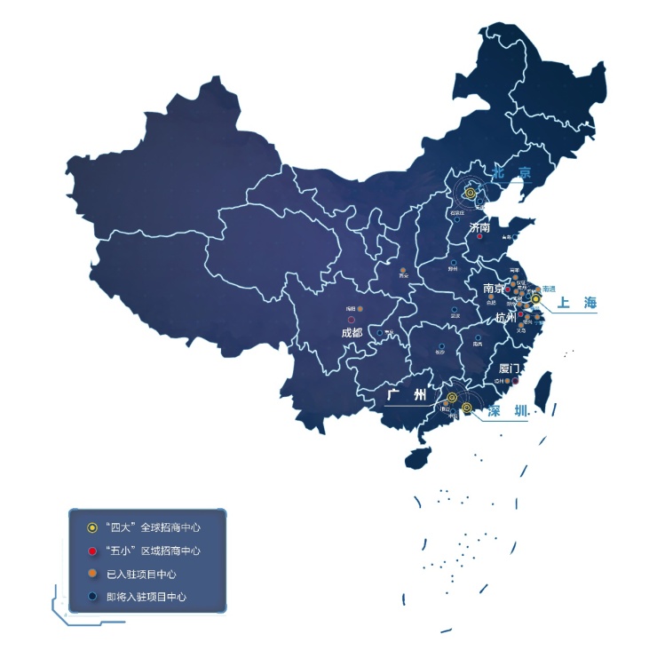 以“產(chǎn)業(yè)先行”為發(fā)展理念,中南高科全面搭建政府、銀行、商會(huì)、企業(yè)圈等招商渠道,開啟了“四大、五小、滿天星”的全國(guó)協(xié)同招商戰(zhàn)略部署,在上海、北京、廣州、深圳建立四個(gè)大型全球招商中心,以及重點(diǎn)省會(huì)——山東(濟(jì)南)、浙江(杭州)、江蘇(南京)、福建(廈門)、中西部區(qū)域(成都)五個(gè)中小型區(qū)域招商中心以及全國(guó)范圍各大項(xiàng)目招商中心。