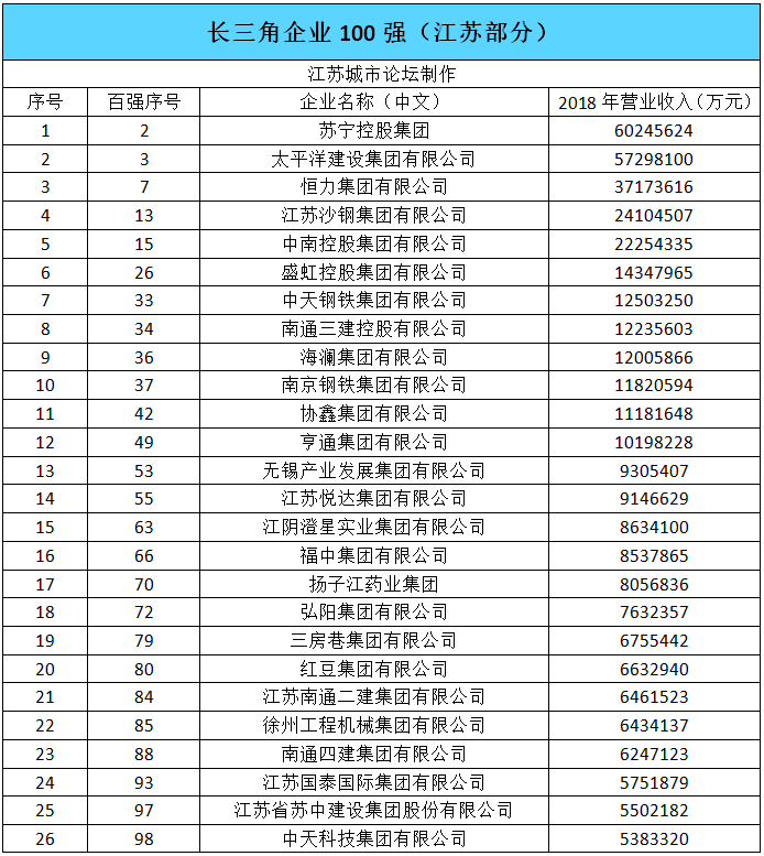 長三角百強企業(yè)發(fā)榜:江蘇26家企業(yè)上榜