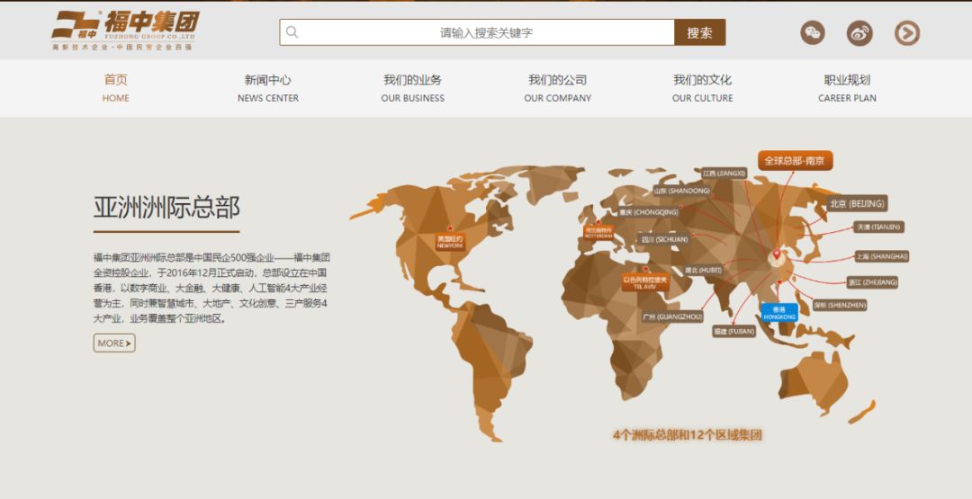 南京是福中集團全球總部所在地,也是福中集團頭部指揮中心、運營中心和行政管理中心,對全球12大區(qū)域集團、4大洲際總部和8大產(chǎn)業(yè)集團進行統(tǒng)一管控。