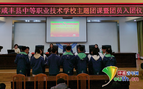 ?。ㄓ浾?李彥龍 通訊員 符雙喜 付雨)11月15日晚,湖北省咸豐縣中等職業(yè)技術(shù)學(xué)校2020年主題團(tuán)課暨新團(tuán)員入團(tuán)儀式舉行。咸豐縣中等職業(yè)技術(shù)學(xué)校黨委委員、副校長楊贊勝、校團(tuán)委書記徐祖波等,以及中南財經(jīng)政法大學(xué)第22屆研究生支教團(tuán)恩施分隊(duì)成員參加了會議。