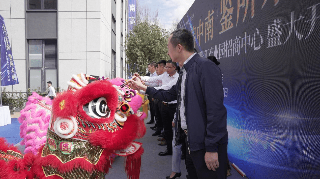 在招商中心開放之際,祥瑞的金獅也來到現(xiàn)場祝福。在鑼鼓喧天的喜慶氛圍中,昆明國家高新區(qū)管委會張洋、中南高科渝滇戰(zhàn)區(qū)招商負(fù)責(zé)人梁國棟及中國銀行、興業(yè)銀行及各商協(xié)會代表等領(lǐng)導(dǎo)一起為金獅點(diǎn)睛。祥瑞的金獅在熱鬧的鑼鼓聲中,為中南高科·昆明智匯產(chǎn)業(yè)園招商中心帶來美好祝愿。