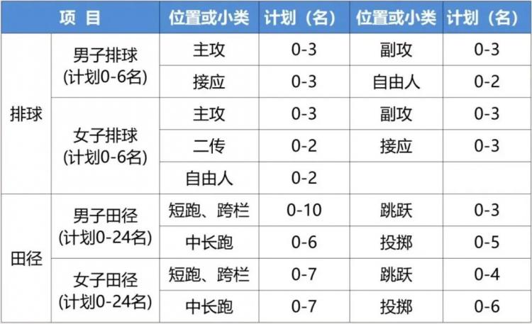 1.入圍劃線原則:根據(jù)生源情況和測試考生成績,學校分項目、分性別、分位置(小項)分別劃定入圍標準。入圍考生總?cè)藬?shù)不超過我校高水平運動隊招生計劃的2倍;田徑項目各小項入圍標準不得低于我校田徑項目專業(yè)測試蕞低控制成績標準(詳見附件2)。