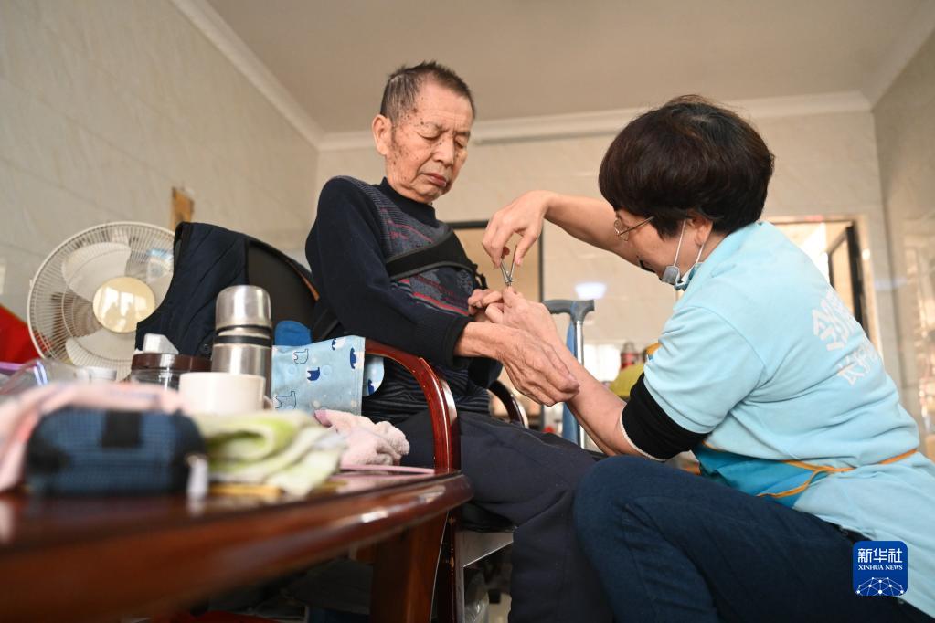 11月25日,長護(hù)險居家護(hù)理服務(wù)機(jī)構(gòu)晉江鄰鹿養(yǎng)老服務(wù)有限公司護(hù)理員林銀花在福建晉江梅嶺街道蔡厝社區(qū)的老人家里開展定期居家護(hù)理服務(wù)。新華社記者 林善傳 攝