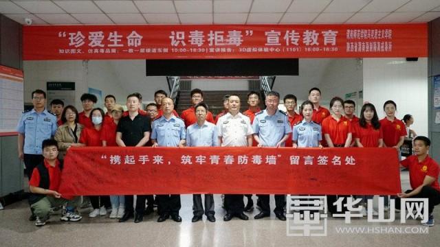 宣講結(jié)束后,渭南強制隔離戒毒所的民警同全體師生一起在“攜起手來 筑牢青春防毒墻”的宣傳橫幅上簽字留念。